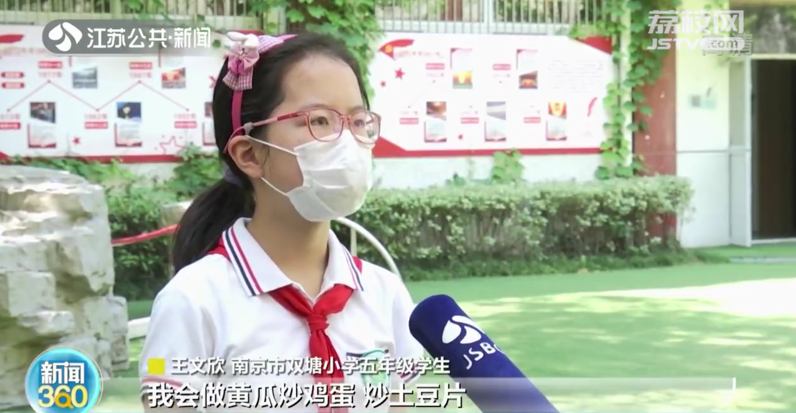南京市双塘小学五年级学生王文欣说:“我会做黄瓜炒鸡蛋,炒土豆片,会下面条也会做汤。”