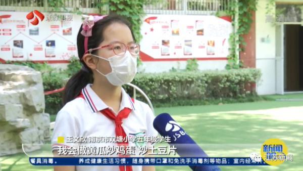 “我会做黄瓜炒鸡蛋、炒土豆片,会下面条也会做汤。”南京市双塘小学五年级学生王文欣说。