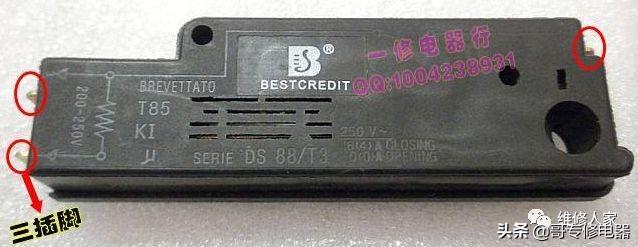 检测与判断:海尔滚筒式洗农机采用电磁式微延时开关,它接在电源电路中,洗衣机关好机门后,门钩活动板推动,洗衣机电源通过PTC元件起动.PTC元件自身发热,温度急剧上升,进入高阻状态,通过PTC元件的热量,将双金属片顶起,双金属片变形后使动触点l动作与静点3接通,同时将塑料销抬起插入到固定板与活动板的小方孔中,使洗衣机门关闭而不能打开。起到控制和保护洗衣机的作用。同时通过静触点2、3对洗衣机通电,洗衣机按程序运转。