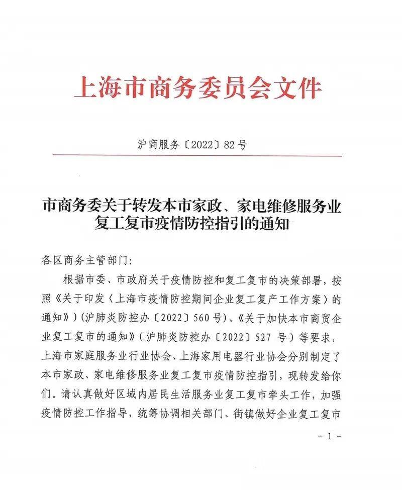 上海家政、家电维修服务业复工复市指引来了→