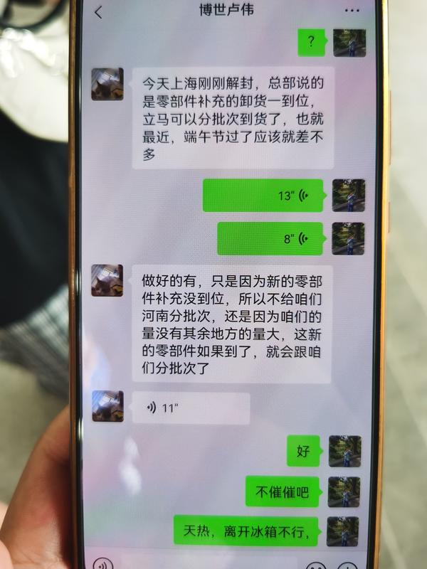 崔女士表示,中间她多次与卢伟沟通询问厂家何时发货等,但卢伟一直以各种理由往后拖延。到今年3月,卢伟以上海疫情导致工厂停工为由,再次拖延发货。