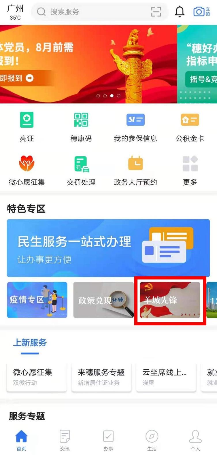 @党员,穗好办APP原“双报到”专区升级为“羊城先锋”专区