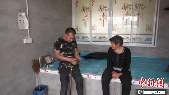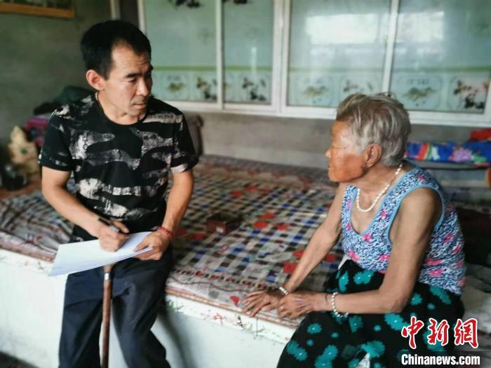 图为赵金华帮村里老人进行高龄津贴认证。 杨景欣 摄