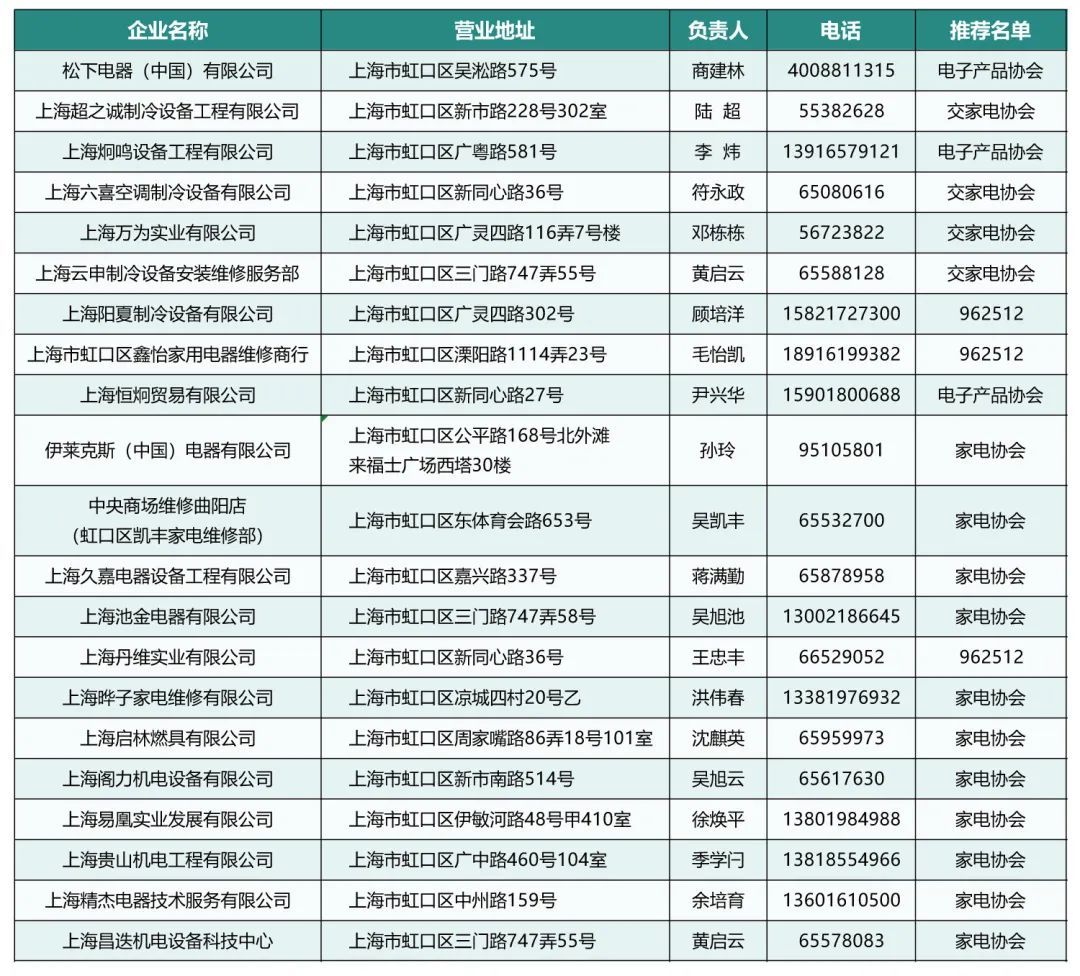 那么,电器坏了上哪找正规维修?小虹找来最新版“2023年上海市家电维修服务行业推荐企业名单”和“上海主要家电品牌维修服务常用信息(2023版)”,一起来看看⬇️