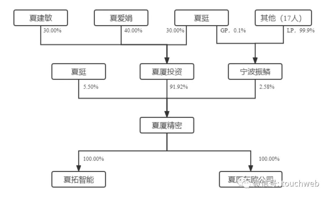 夏爱娟和夏建敏两人为夫妻关系,夏挺为夏建敏、夏爱娟之子,夏建敏、夏爱娟及夏挺合计持有夏厦投资100%股权,直接控制夏厦精密控股股东夏厦投资,为夏厦精密的共同实际控制人。