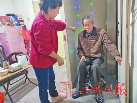 2015年,俞芳绍的类风湿更加严重了,双腿基本没办法走路,出不了门。这接下来的两年时间,他几乎没下过楼,生活起居都在二楼。可这样下去总不是办法。2017年底,俞芳绍花了2万多元,上网买了一部电梯,由专业人员上门安装。有了电梯后,他上下楼方便多了。