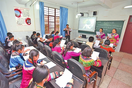 武定县民族中学傈僳族教师在给傈僳族学生上文化课