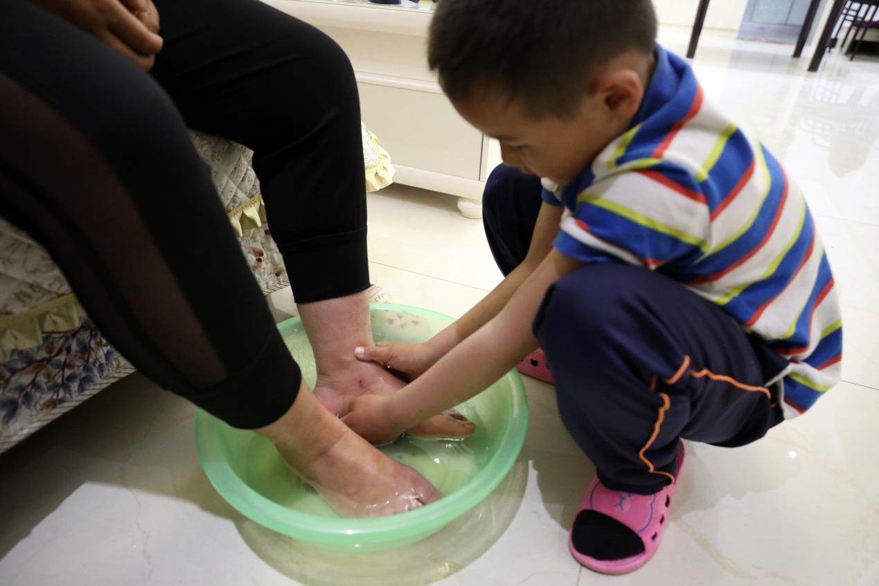 818、双十一等快递员大忙的时候,赶上放假的楠楠总会磨着龚晓娟带上自己去送货,有时坐在车里帮她看货,有时甚至会主动上手搬运小件。晚上回到家,楠楠偶尔也会打盆洗脚水过来,给龚晓娟送来不经意的温暖。