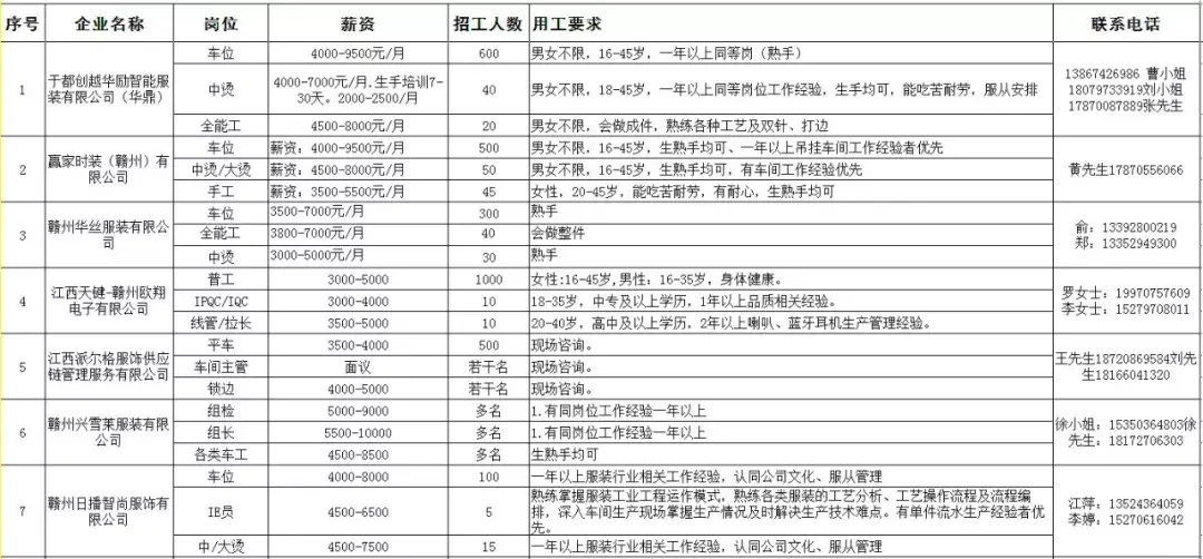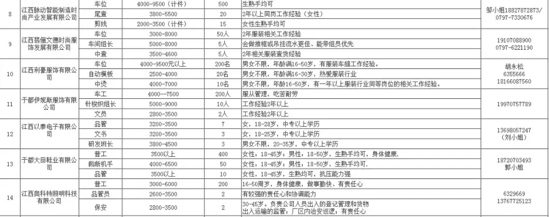 要求:男女不限,年龄16-40周岁,身体健康、手脚灵活、工作认真、责任心强、吃苦耐劳、服从管理,有经验者优先录取;