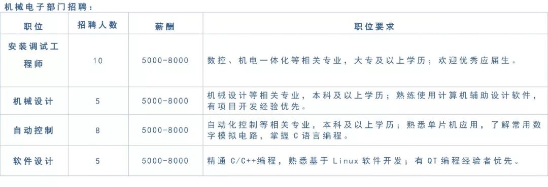 机械电子部门招聘: