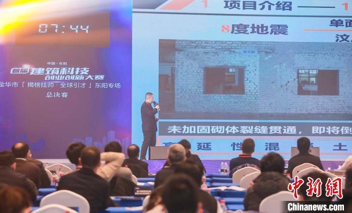 中新网金华12月24日电(记者 奚金燕)24日,中国·东阳首届建筑科技创业创新大赛总决赛暨金华市“揭榜挂帅·全球引才”东阳专场在浙江东阳举办。20个优质项目通过现场路演强强对决,最终,建筑泥浆高效处理及资源化利用关键技术项目和WisDom智能诊断分析设备项目斩获一等奖。