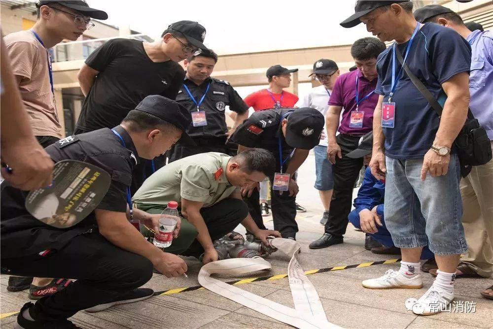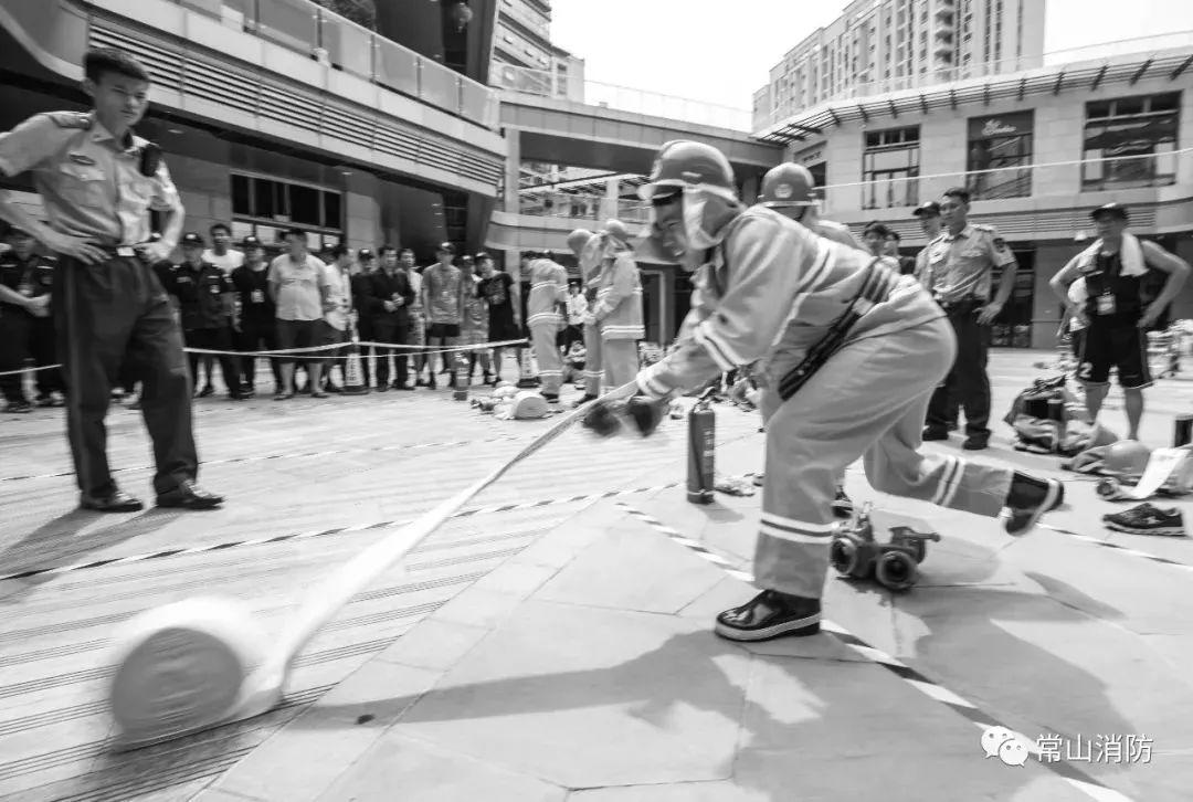 在40米水枪灭火器连用灭火操比武场上,人头攒动,只见参赛队员精神抖擞、奋发争先。裁判及计时员秉承公平、公正、公开的原则,严格按程序计分。