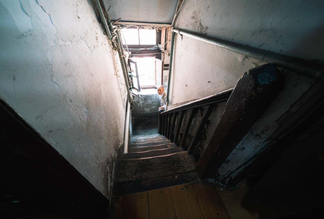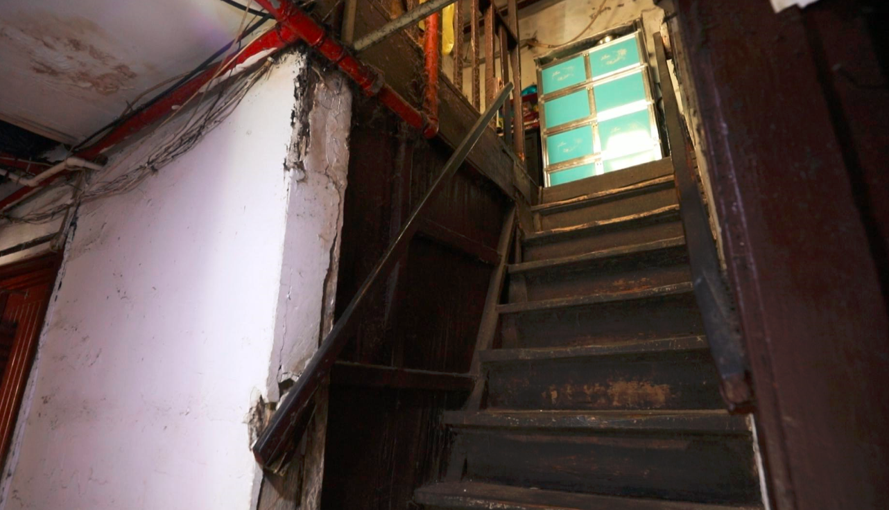 原本贸易公司的办公楼,在上世纪30年代被改建成了141和147号的双子居住楼,其中141号居住着30多户人家,一个厨房竟然供8户使用,生活状况及品质堪忧。