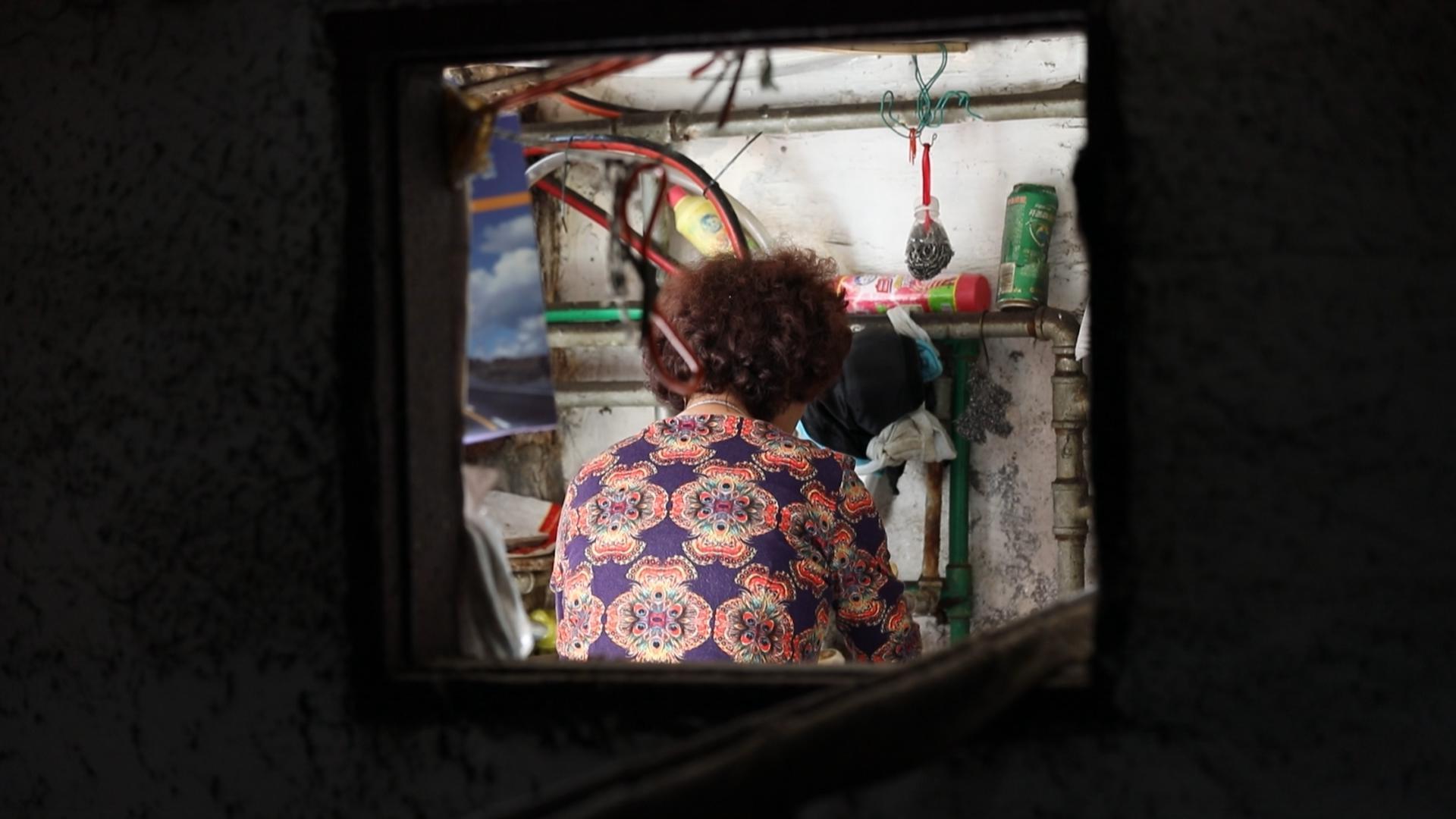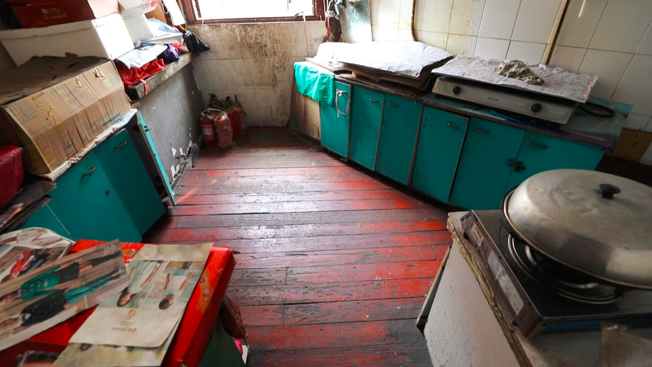 阿姨介绍这里的厨房有的是5家人在用,有的是8家人在用,厨房与住房不在同一个楼层,上上下下,跑来跑去,使用非常不便,即使占据了最好的位置,但是生活的品质感却很差。加之,原本是办公空间的居住楼,水管的分布比不了普通居民楼,厨房没有洗菜切菜的功能,通风也是遥不可及。