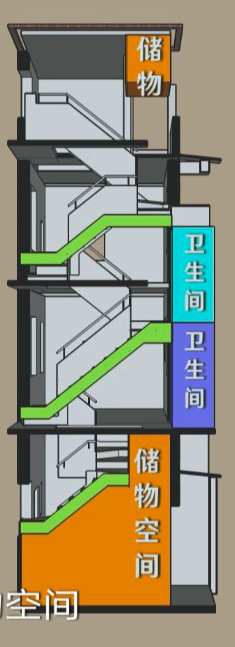 至此,整幢楼的结构修复和公共空间规划基本完成。整楼在一层和五层分别增设了卫生间;全楼的公共厨房基本上下统一位置、整体改造,方便管线、排风的统一布局;四五层翻新后增加了舒适的公共空间,方便使用。