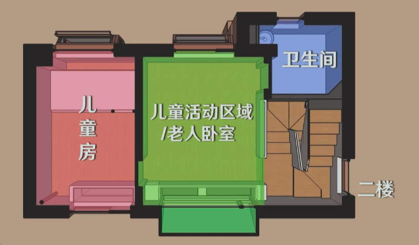 二楼原来的住户的燃气都堆放在走廊上安全隐患比较多,所以一层靠内天井的房间进行了抽户,空间将作为公共厨房间来使用,实际扩大了每层可供居民使用的面积,提升了每户使用的舒适度。