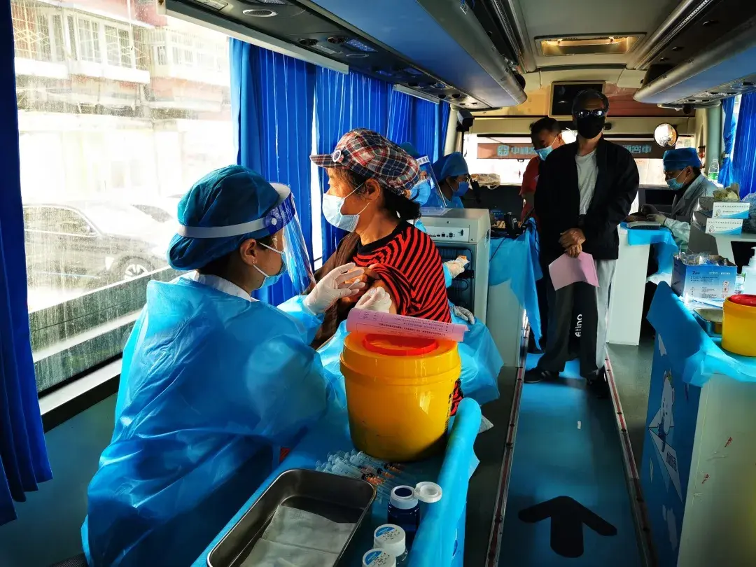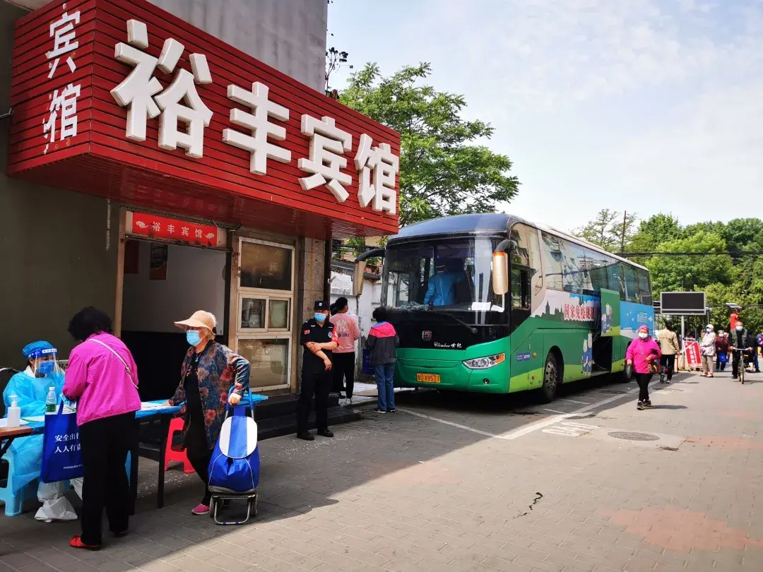 值得一提的是,新冠疫苗接种流动车开进西罗园洋桥北里社区。移动疫苗接种车外观与普通客车类似,走进车内却别有洞天。车内按照标准的疫苗接种点进行布局,工作人员位、接种位、放置冰箱和物资的地方一应俱全。按照接种流程,接种人员可先在等候区的座椅上等待,再去信息登记台登记,接着就可到疫苗接种台进行接种,最后在车外留观区完成留观。