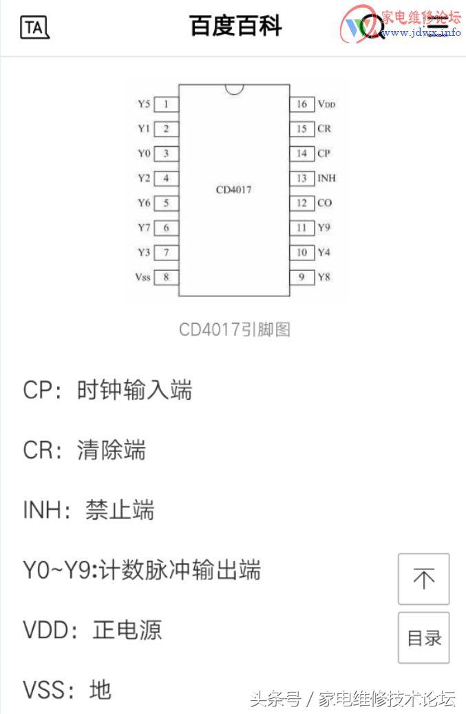 针对原机的工作流程,经过一番琢磨,决定使用一块4069数字IC的其中两个反相器组成方波振荡器,作为时钟信号,使用4块4017十进制计数器级联的形式,来达到LED流水灯效果和延时停止电机运转的功能,本人设计的图纸及工作过程如下:12v直流电经DC插座进来分为两路,一路给电机的正极,一路经78L05三端稳压块给4069和4017供电,轻触开关被按下的瞬间,所有的4017清零,这里简单说一下4017的功能,4017的14脚为时钟输入端,上升沿有效,每进来一次脉冲进位一次,输出顺序为:3、2、4、7、10、1、5、6、9、11,这些引脚依次输出高电平,15脚是复位清零端,高电平有效,13脚时钟禁止,高电平时锁定当前输出状态,12脚是进位输出,当11脚由高电平跳变为低电平的时候,12脚输出一个高电平用来触发下一级4017,由4069组成的方波振荡器输出3Hz左右的频率脉冲,去触发第一个4017的14脚时钟输入端,由于第一个4017的7脚与15脚相连,所以它的输出顺序永远是3、2、4……3、2、4如此循环,这样在它的4脚就会输出一个1Hz的时钟信号,用这个信号去触发下一个4017,下一个4017再去触发下一个,然后再下一个,最后在IC4上会得到一个每隔100秒进位一次的时钟信号,当IC4的11脚跳变为高电平时正好经过了1000秒,1000秒÷60≈16分钟,刚好达到了原电路16分钟的要求,IC4的11脚信号输出分为3路,一路去控制电机的场效应管,使其截止,一路去触发有源蜂鸣器报警,另一路去4069其中的两个反相器对信号进行放大和整形,整形放大后的信号去第一个4017的13脚时钟禁止端,封锁时钟信号输入,指示灯不再循环闪烁,而是静止在蓝色指示灯亮起的状态上,表示净化过程结束。