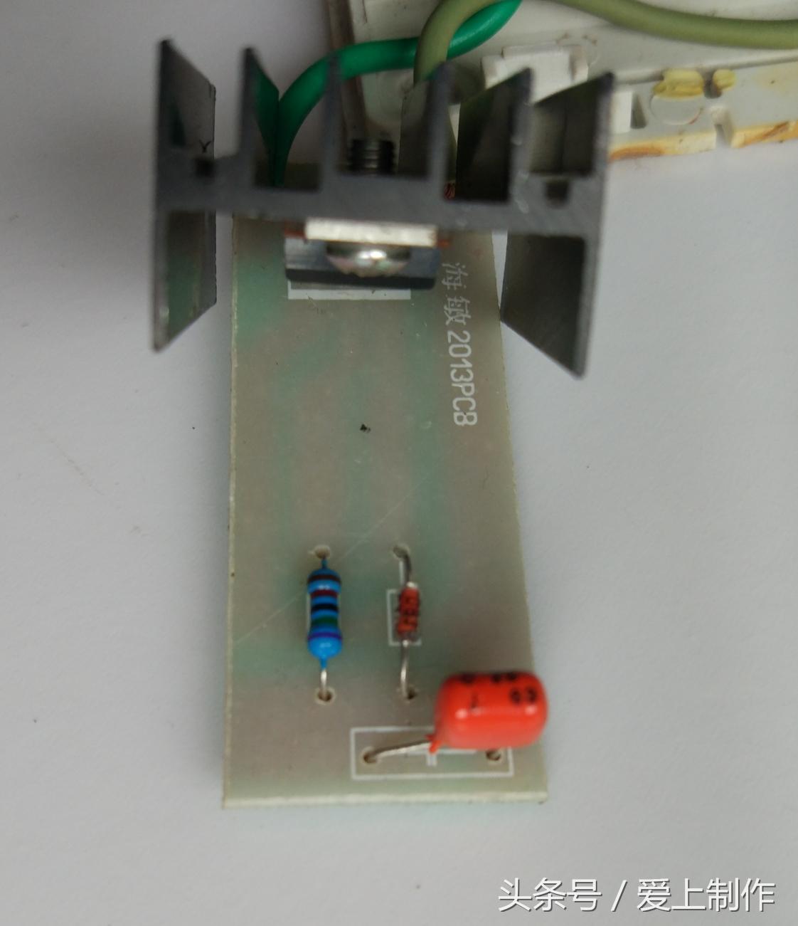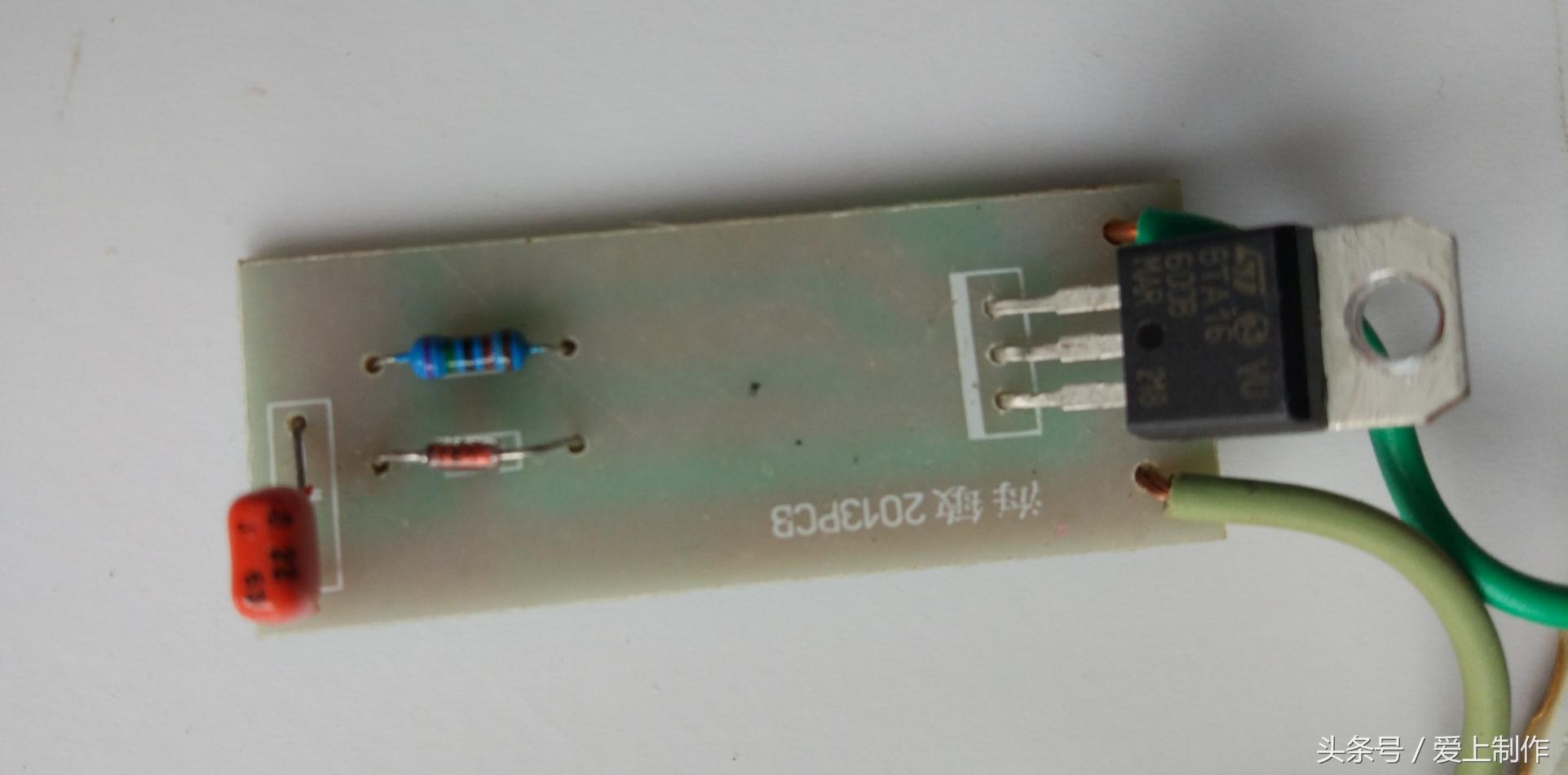 再看看电路板上有什么原件,一个电阻,一个电容,一个二极管,还有一个 德州仪器牌的 双向可控硅,型号为BTA16-600B