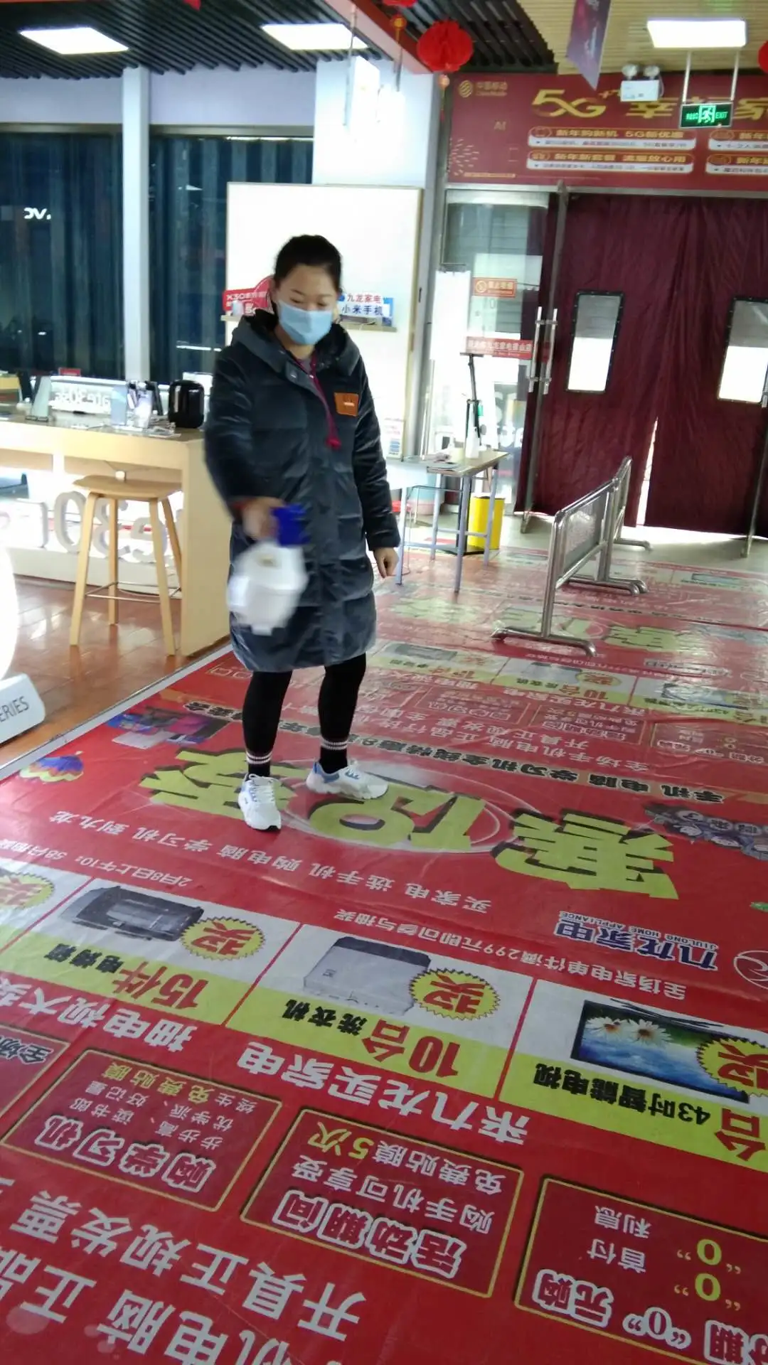 并告知:为了让顾客放心购物,每天将高度负责任地开展:①对商场公共区域进行全面消毒;②全体员工每日上班进行体温检测;③为了顾客和员工安全,所有人员必须佩戴口罩进入卖场。