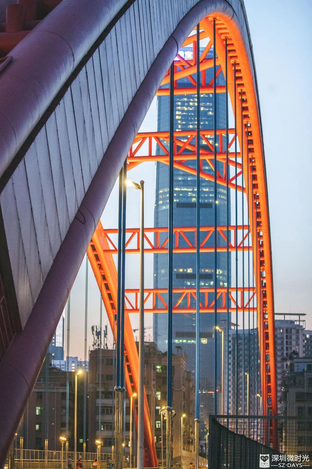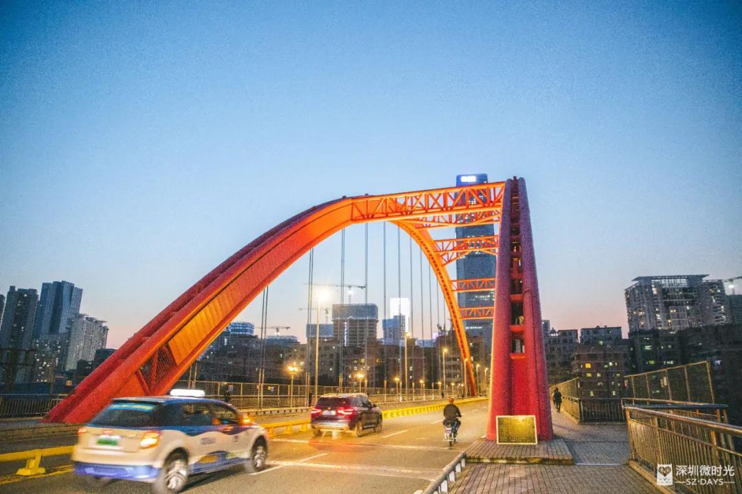 扶在桥栏上微风习习,大半个笋岗在眼前铺展开来——铁路线上的绿皮火车亮着微光,整个笋岗村掩入夜色,远处高耸的“宝能”二字犹为瞩目。身边几辆车子极速驶过,桥面轻微颤动,一时间会生出错觉,下一秒人就就要掉入桥下的洪湖里。