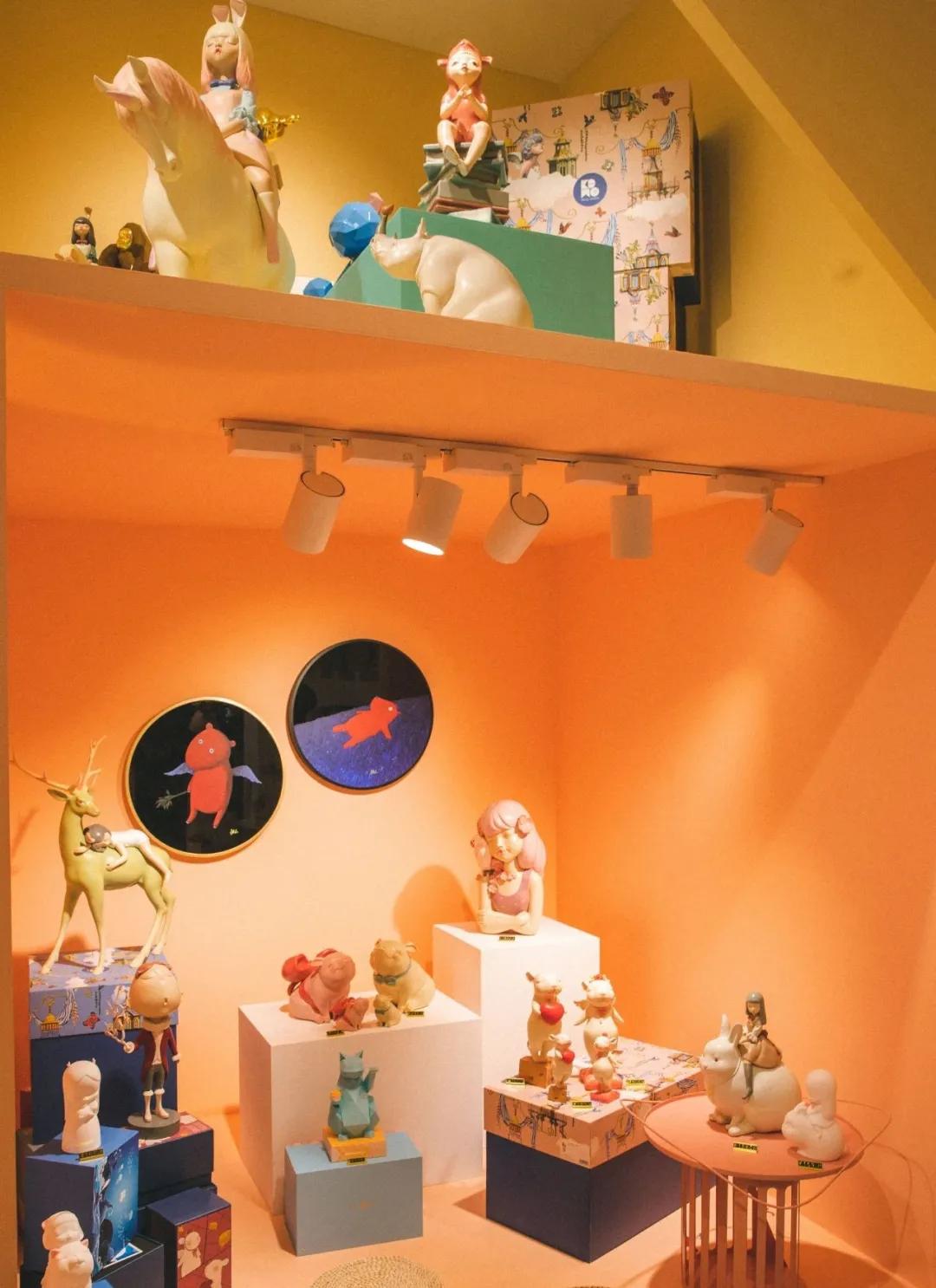 罗志杰在艺展中心一层新开了家手办店,商品单价在几十块到数千块不等,工作日的上午,一个女孩在店里挑选一番后,付了1000多块离开。艺展中心四楼的一家艺术集成店橱窗里,摆放着 Jamie x的黑胶唱片。