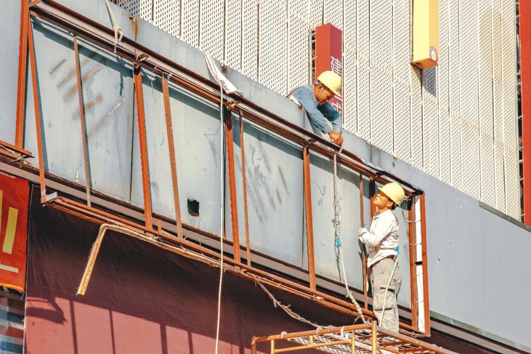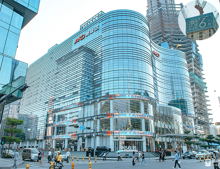 紧邻澳康达名车广场的城脉中心还在施工中,吊车下的楼体上,“388米封顶倒计时6个月 ”的条幅犹为显眼。