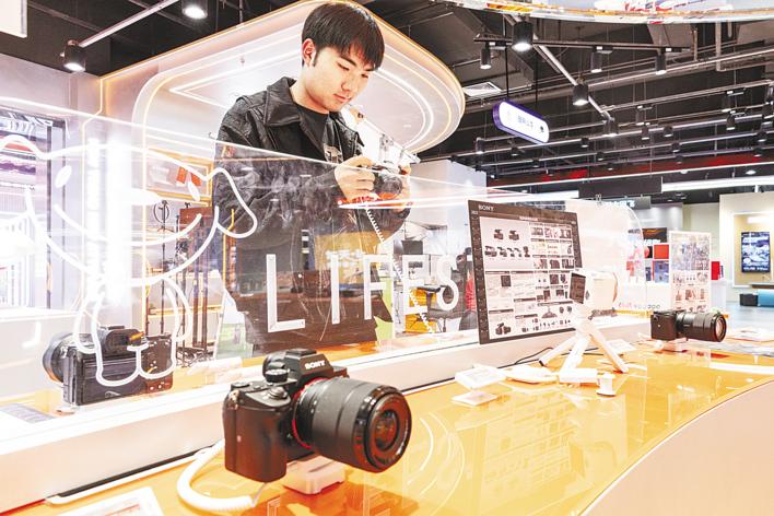 市民在武汉京东mall购物中心选购照相机。 (湖北日报全媒记者 任勇 摄)
