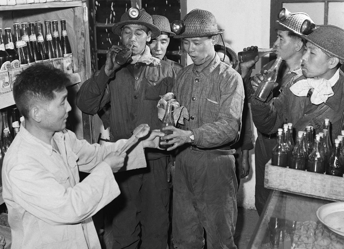1961年6月,北京京西矿务局城子煤矿副食商店为做好夏令副食品供应,在井口的工人休息室里准备了冰棍、汽水、啤酒等,方便矿工购买。