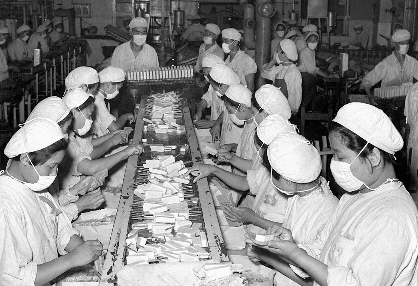 1956年6月,东北制药厂为高温作业工人供应盐汽水。