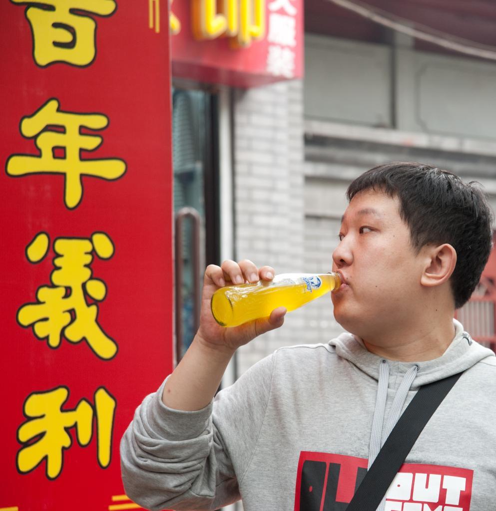 2011年9月15日,一名市民在北京街头试饮“北冰洋”汽水。在北京北新桥一家义利专卖店举行的试喝活动中,在市场上消失了近15年的“北冰洋”汽水重新亮相,吸引了众多市民踊跃品尝。