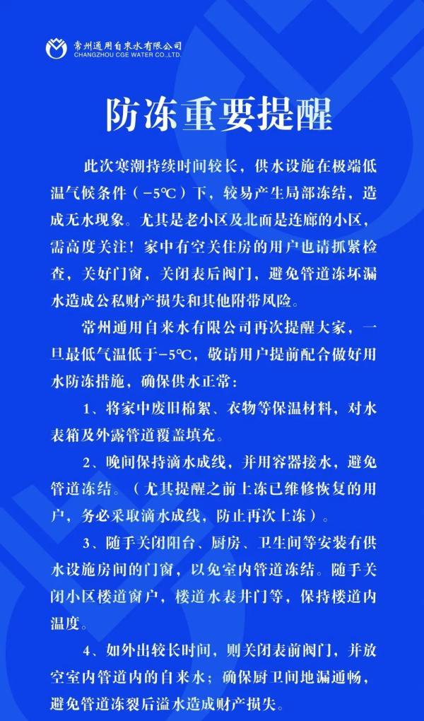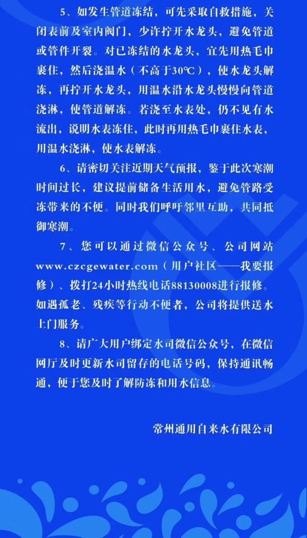 8℃!严重冰冻!常州西新桥、清潭、红梅等8个片区今起间歇性停水4天