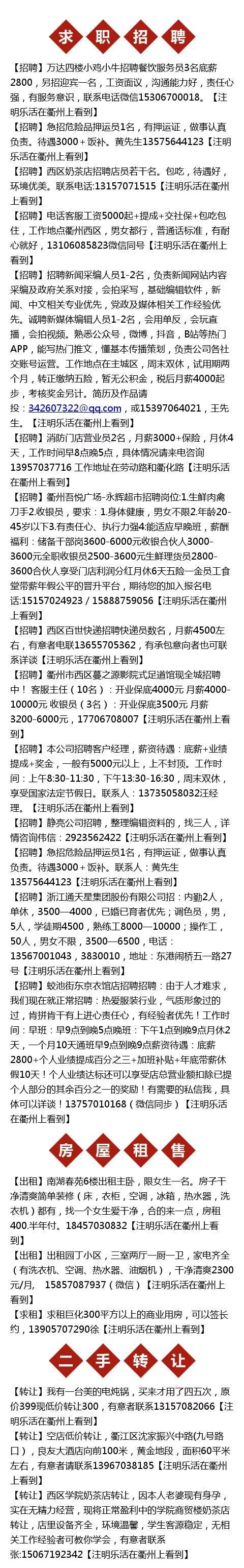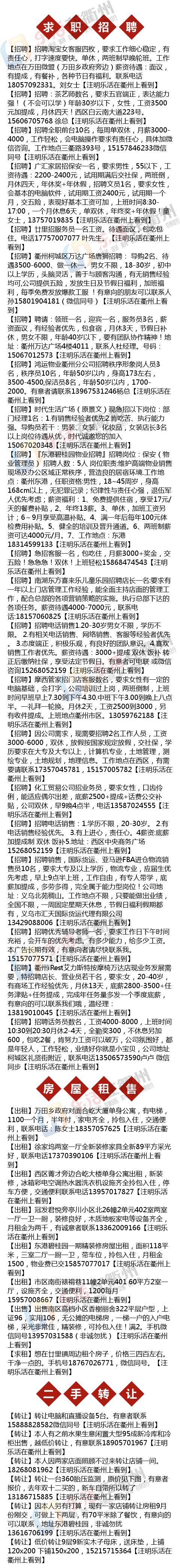 【万能的乐活君】 暂时只接受求职招聘,出、租房,二手转让等信息!基本信息我们已经筛选,具体情况电话咨询,若有虚假请第一时间向小编微信lehuojun2反馈!乐活在衢州微社区里禁止发广告,恶言相对!