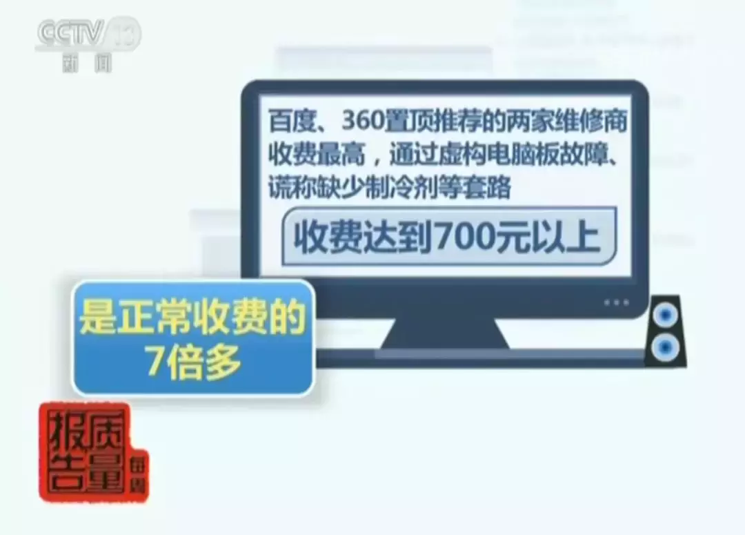空调维修虚构故障、小病大修,百度、360、58同城置顶商家不靠谱