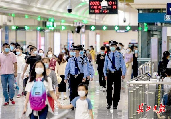 (图为地铁梨园站,轨道分局民警在巡逻,为市民创造平安环境。记者史伟 摄)