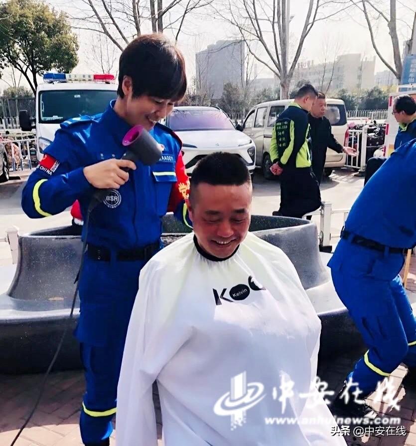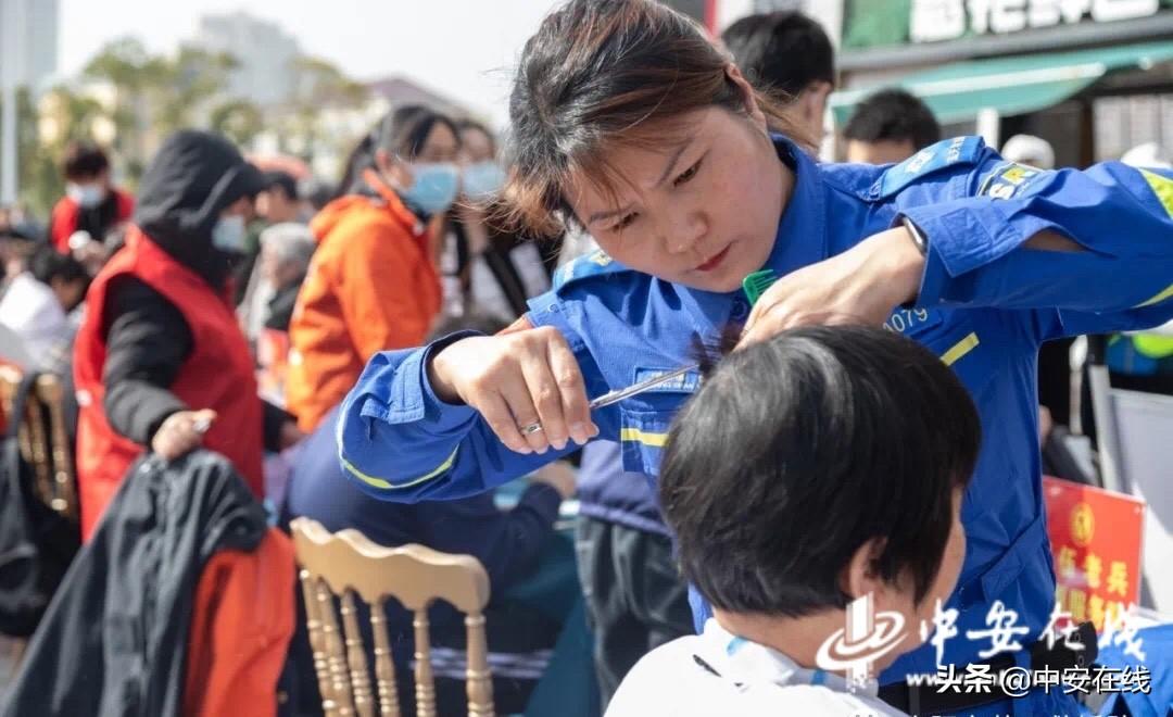 旁边的爱心理发项目点位,苏琴队长正带着明星理发师余涛、队友汤善银,为前来剪发的老人和孩子勾勒着靓丽的造型。大爷大妈和孩子们一边排队等待,一边夸赞着合肥市蓝天救援队无私奉献的大爱精神。不知是哪位小朋友在人群中喊了一句:“他就是去郑州救灾的Tony叔叔!”人们无不投来敬佩的目光,纷纷为他鼓掌。