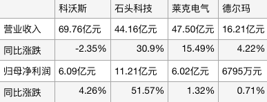 清洁电器仍是家电明星品类。科沃斯、石头科技、莱克电气、德尔玛四家上市公司半年报中,唯有科沃斯出现下滑,其他公司业绩都上涨。营收方面,科沃斯规模最大,但增速出现下滑。石头科技业绩增长最好,莱克电气、德尔玛净利润表现不如营收。