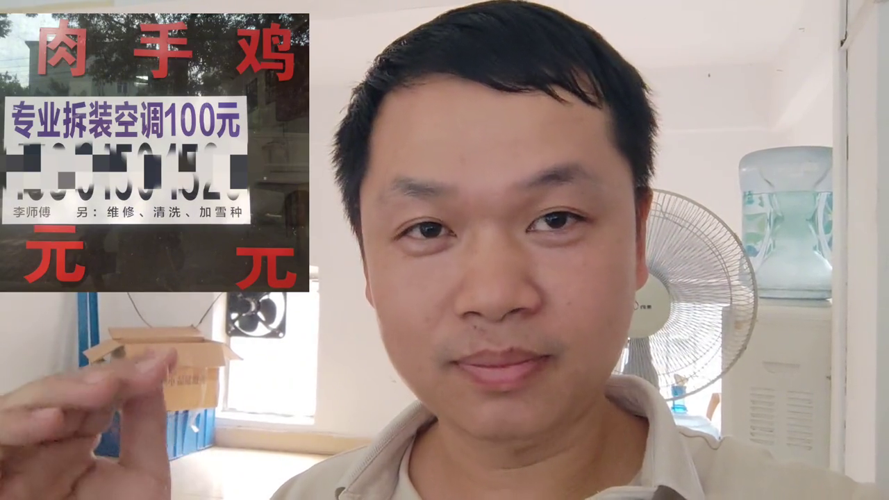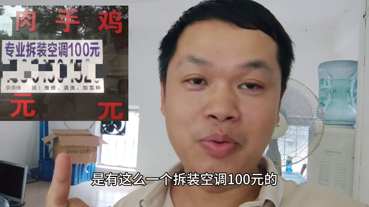 今天就没有拍摄到维修方面的内容了,今天就是去拆装了三台空调。去工业区干活,发现工业区门口有一个招牌广告字,专业拆装空调一百元。跟大家聊一下八卦主播聊一下价格。