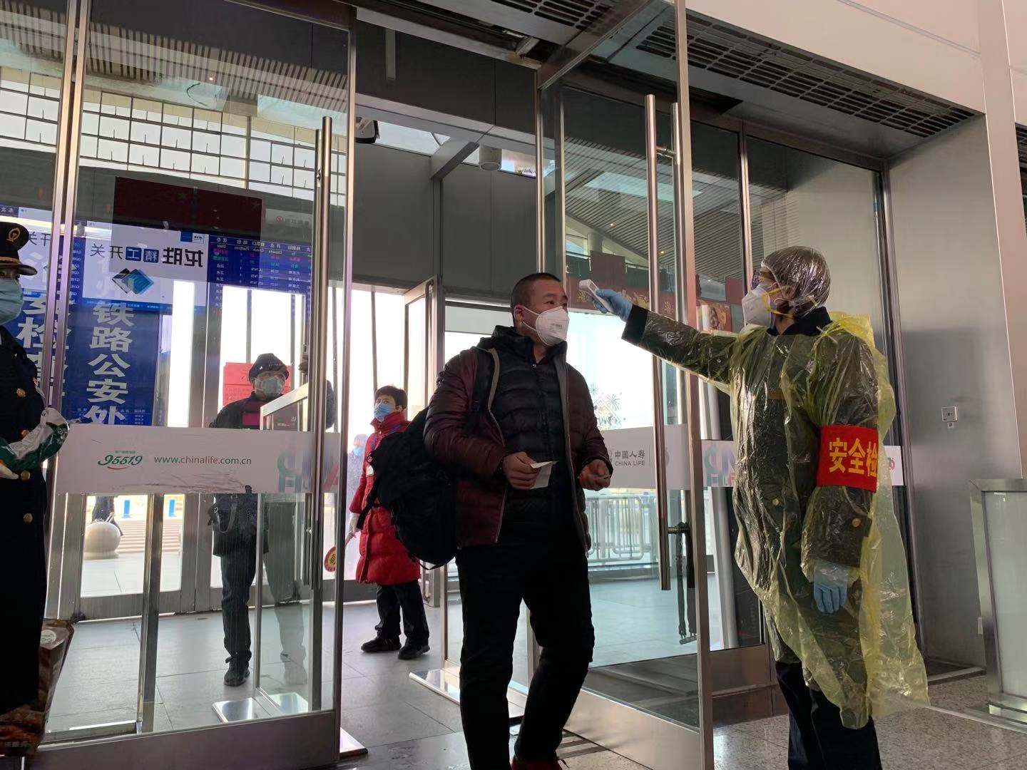 而在徐州东站进出站口,“防疫先锋”们同样严阵以待。来自徐州汽车客运东站、南站的20名党员组成突击队,对进、出站旅客逐一测量体温,安全排查。 “那谁口罩再戴多一个!还有你,手套别忘!”徐州汽车客运东站党支部书记周波一上午已经在高铁进、出站口上下跑了十几趟,她一边统筹现场工作,一边不时叮嘱同事们做好防护。