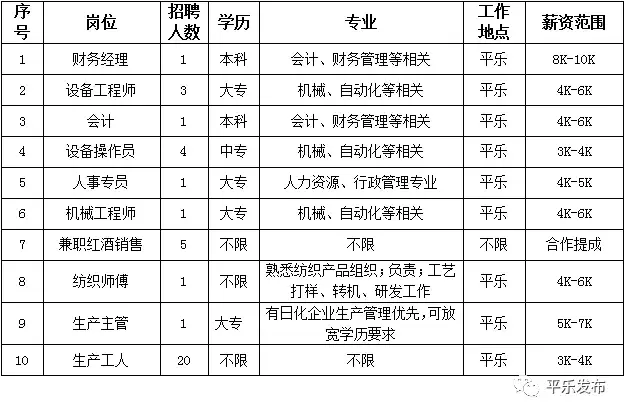 平乐又一批企业招聘,待遇优厚,快来应聘吧~