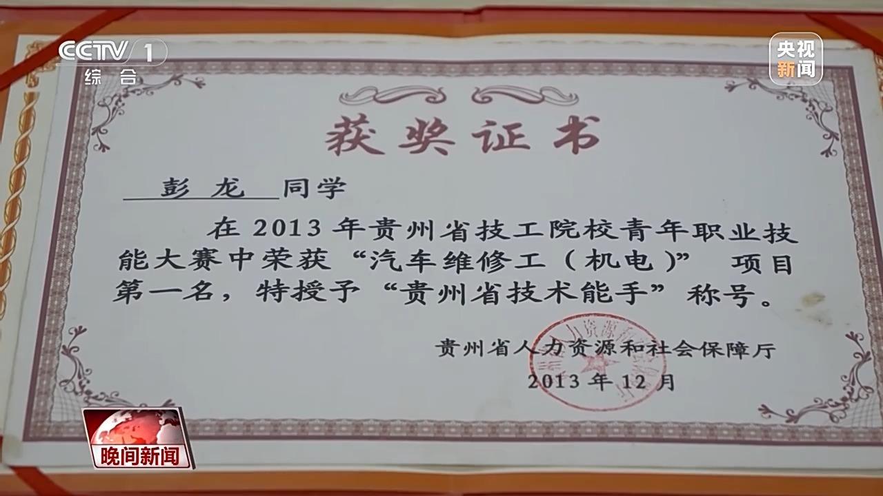 贵州交通技师学院汽车工程系教师 彭龙:当时拿了省赛一等奖以后,自己非常高兴,证明了中专也能学到真本事,也相信技能成就未来。这个也改变了很多亲戚朋友的看法,后来乡亲的很多孩子都来读我们学校。