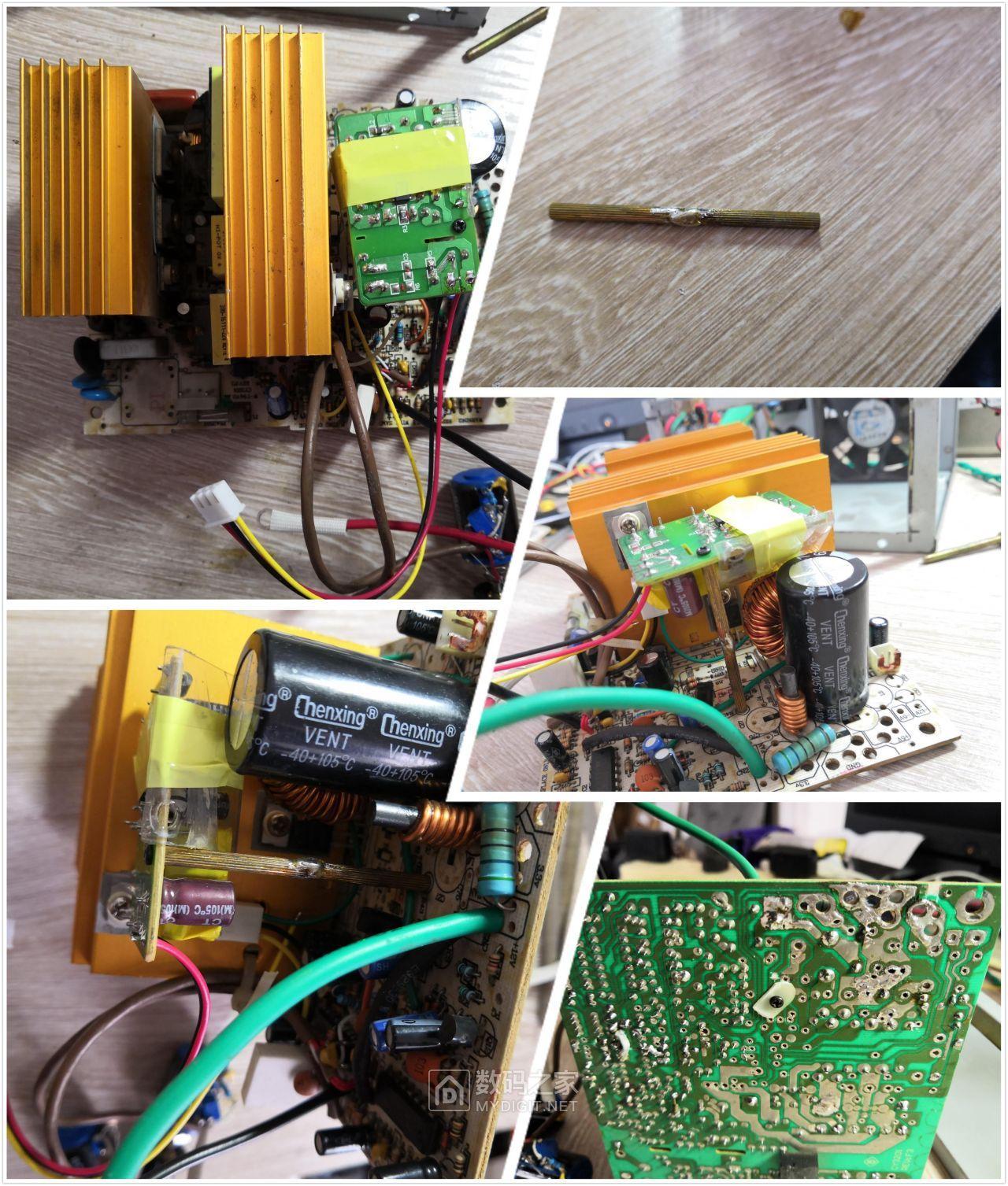 对于改调压调流部分,这里就不再表述了,只要是TL494或者7500的芯片,改的步骤都是一样的。这里再说一下重绕变压器的过程,拆变压器铁芯的时候,最好用热风枪先把铁芯四周慢慢的加热,特别是好的电源变压器特别牢固,不加热很难完美的拆下来的。加热了之后用两把刀从左右两边慢慢的切下去,切勿用大力气或者硬橇,要不然你就会像我一样悲剧了。