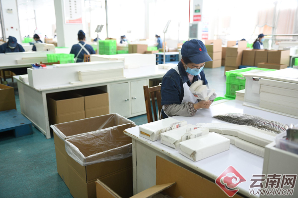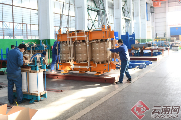 在位于通海县的云南通变电器有限公司,300名戴口罩的工人正在生产线上忙碌着。装配车间里,工人正忙着组装变压器;厂区内,绕线、插片、调试、浸漆等工序有序开展。