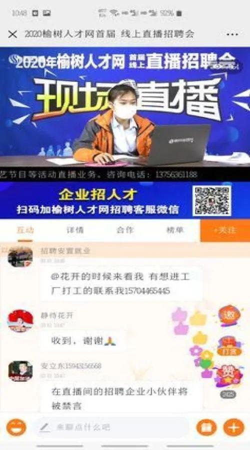 网友在直播间与主播沟通岗位需求与岗位办理事宜
