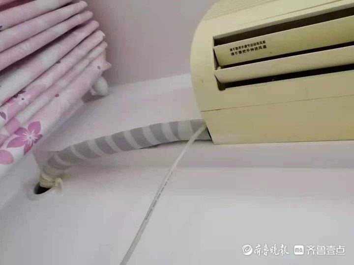 7月14日下午,齐鲁晚报·齐鲁壹点记者来到姜先生家中了解情况。姜先生家中的旧空调启动制冷后,空调管道上便会产生水珠,滴落到室内。姜先生告诉记者:“旧空调有十几年了,之前一直用的好好的。家里6月14日买了新空调,6月23日师傅上门安装时,便让师傅顺便将原来的旧空调移动到了另一间卧室,当时新空调安装加旧空调移机一共花了560元,移机费是380元,其中高空费100元,安装费100元,加长了一米铜管花费80元。但是昨天打开旧空调使用时才发现,空调管道滴水很厉害。”