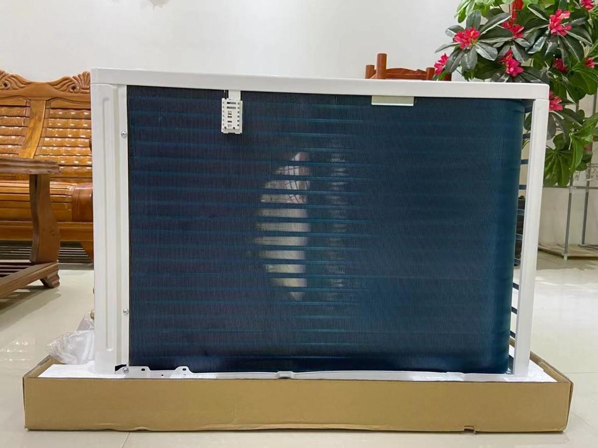 外机背面采用金属防护网,防止运输过程中损伤冷凝器的翅片。