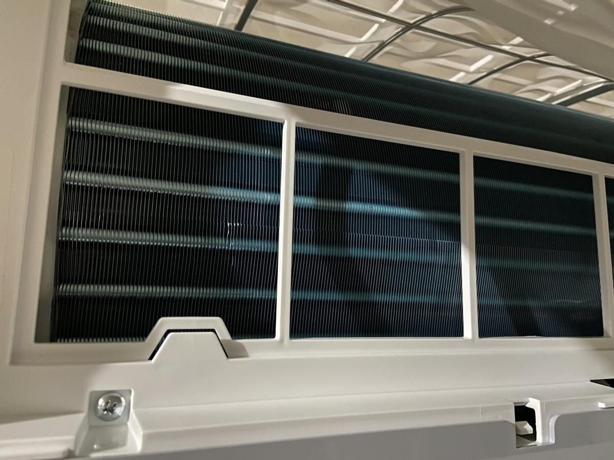 打开空调盖板,我看到两块高密度防尘滤网,而在右侧滤网内,还有一个创新的UVC紫外除菌器。
