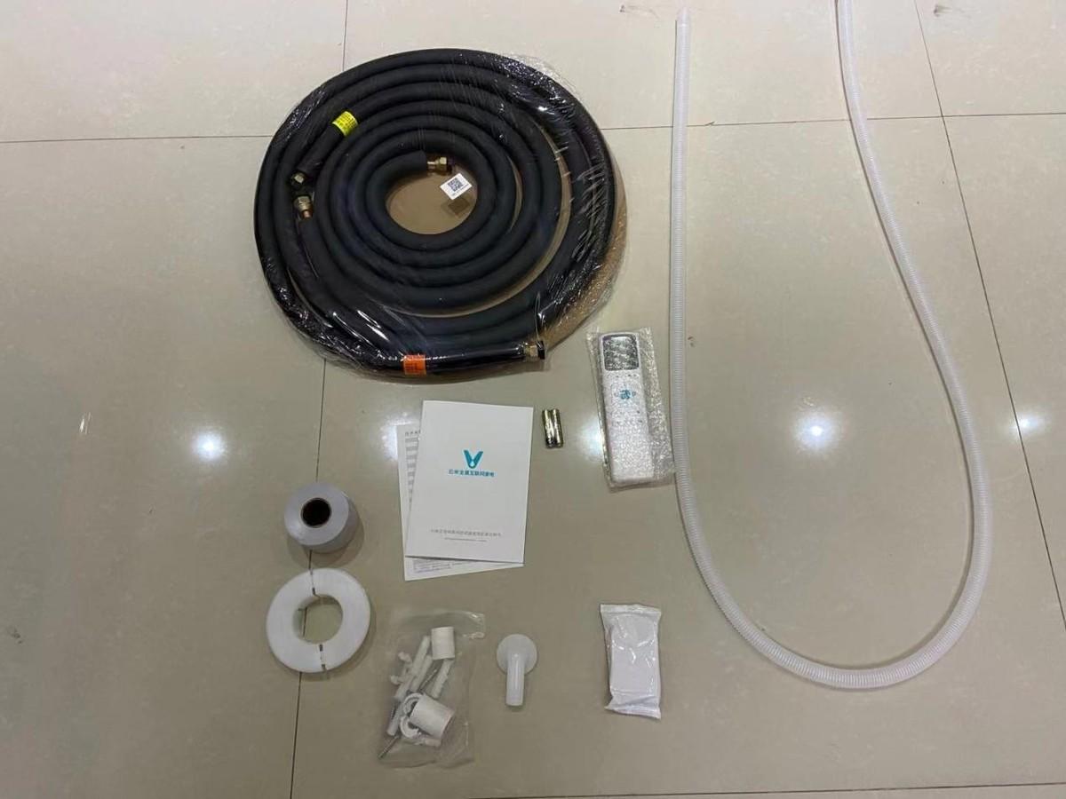 配件方面,随机附带了3米的铜管和冷凝水管。同时像密封胶泥,管线装饰盖这样的小配件也样样齐全,应有尽有。