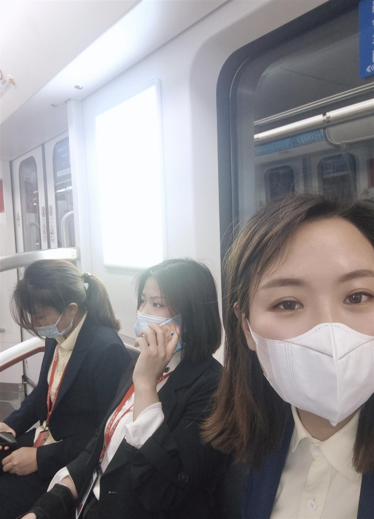 童丹和同事乘坐地铁去谈单