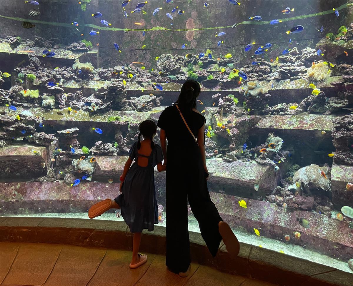 童丹带女儿去海洋世界